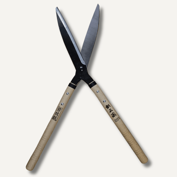 Hand-forged in Ono, Hyōgo by the renowned Yoshioka Hamono blacksmiths, these 225mm curved topiary shears are ideal for bonsai shaping, hedge detailing, and refined sculpting. Crafted with Yasugi White Paper Steel (Shirogami #2), they deliver exceptional sharpness and effortless control for delicate foliage work.